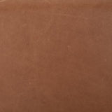 Light-washed oak frames a floating, sling-style headboard made from tan top-grain leather, with subtly rounded edges and metal dowel detailing. Rounded edges bring a touch of softness to the bedroom.