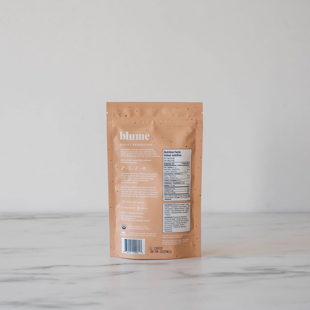 Ingredients: mesquite powder*, date powder*, dandelion root powder*, oat milk powder*, pink himalayan salt, natural flavour*, maca powder*, carob powder*, schisandra berry powder*.