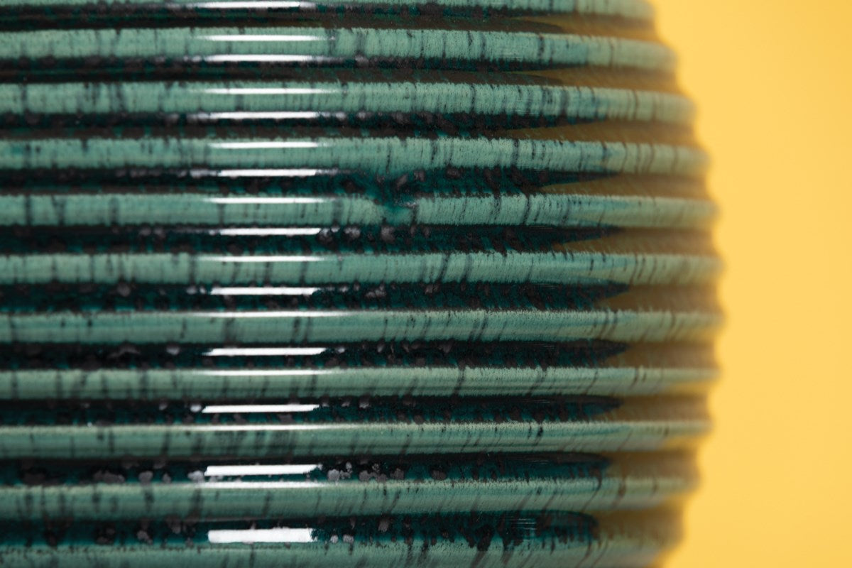This lamp gives the classic look of a table lamp a modern upgrade. Not only does it showcase a fantastic texture of ribbed glass, but it provides a pop of colour that will stand out wherever it is placed in your home.