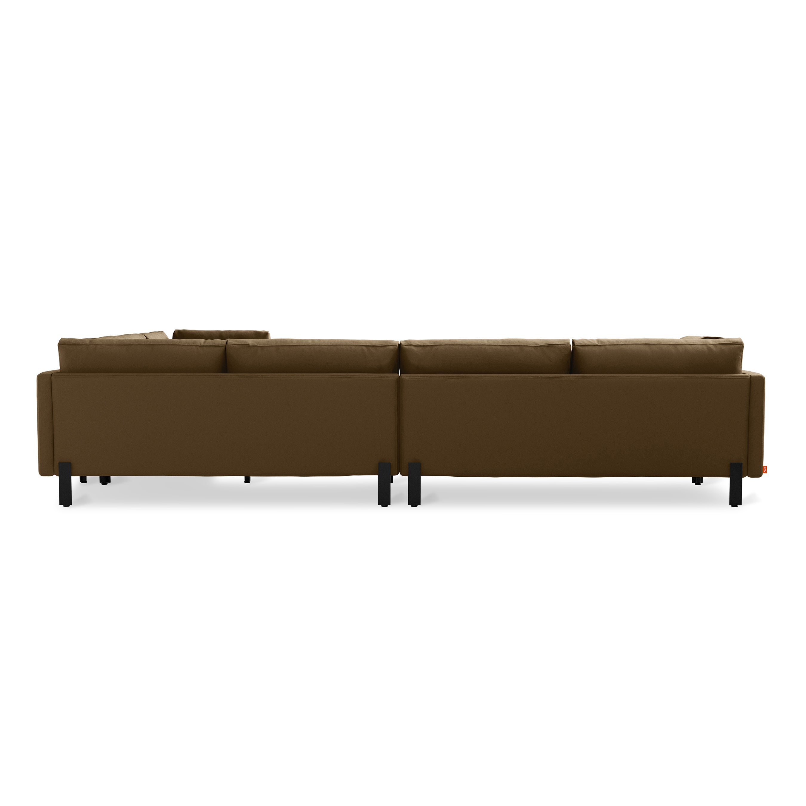 The Silverlake XL Sectional exemplifies Scandinavian-inspired design, balancing minimalist style with a relaxed, welcoming atmosphere. It features a sleek tuxedo frame paired with plush seat and back cushions filled with eco-friendly, signature PET fiber. Adjustable back and side cushions provide customizable comfort, while the deep seating enhances overall relaxation. Delicate touches like pleated fabric accents on cushion corners and architectural black powder-coated steel legs complete its modern, understated look. Crafted from kiln-dried FSC®-Certified hardwood, the sectional supports sustainable forestry, and its ultra-soft, long-strand fiber fill delivers the luxurious feel of traditional down with environmentally responsible benefits.