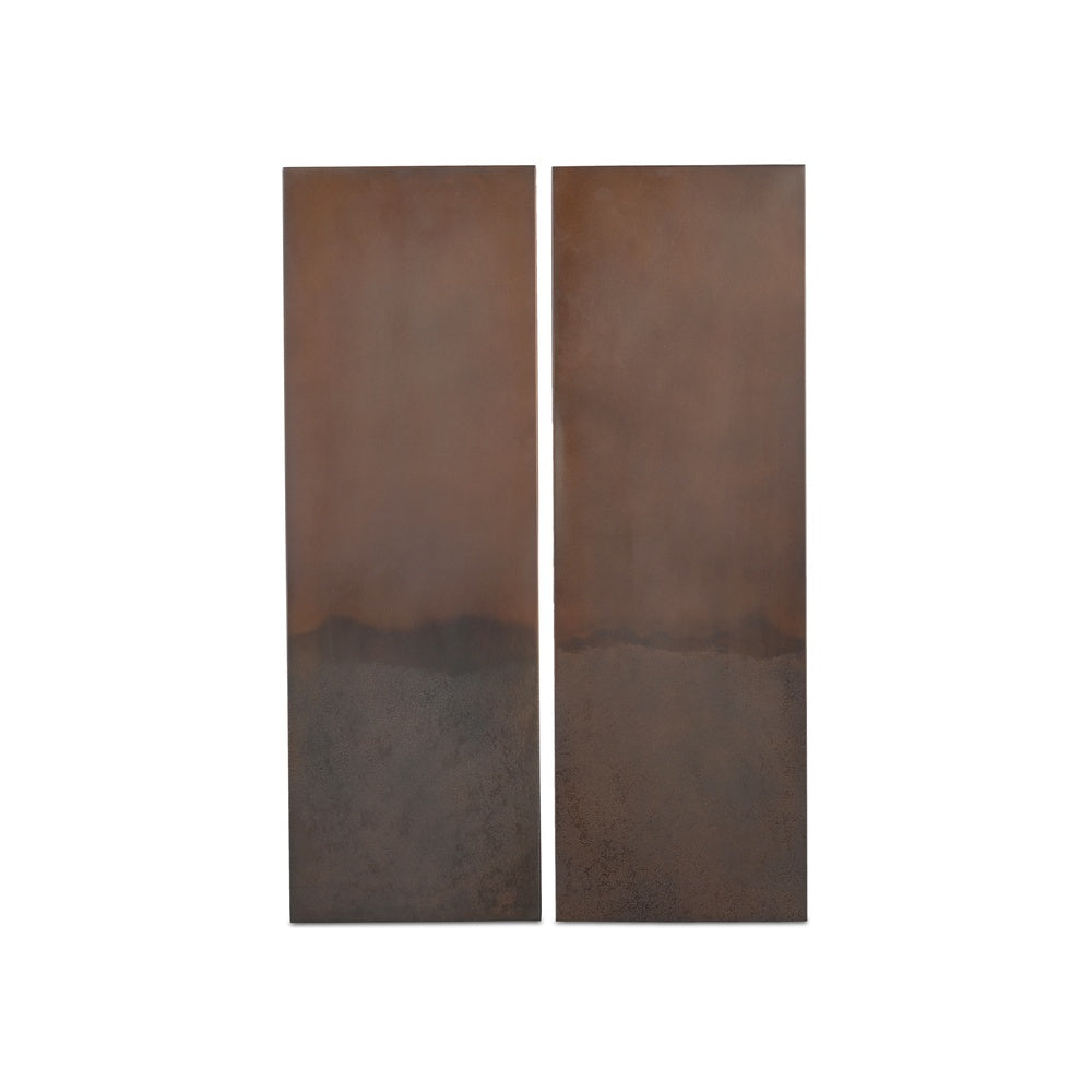 Finished in a mesmerizing aged bronze tone, the Smithers wall decor is a duo of narrow iron panels that tell a story of time and transformation. A carefully orchestrated oxidation process creates a unique patina, with rust-toned hues dancing across the surface. Versatile in their simplicity, these panels can be arranged vertically or horizontally, allowing you to curate a personalized visual narrative.