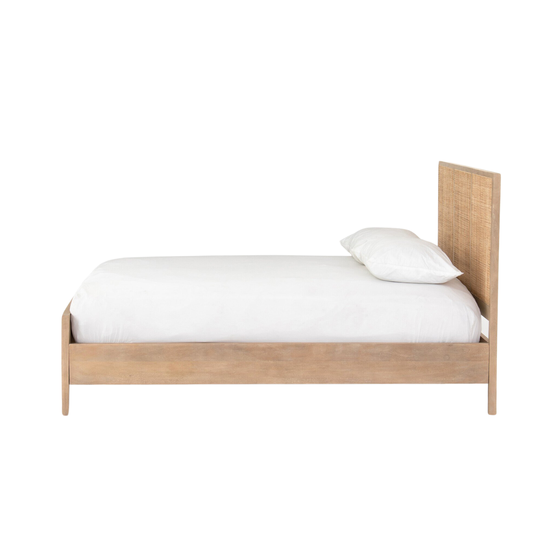 The Sylvie Bed offers a sleek and contemporary design with its wood frame and woven cane material. This provides a unique and textured look, perfect for those seeking a monochromatic aesthetic. With no need for a box spring, this bed offers both style and convenience.
