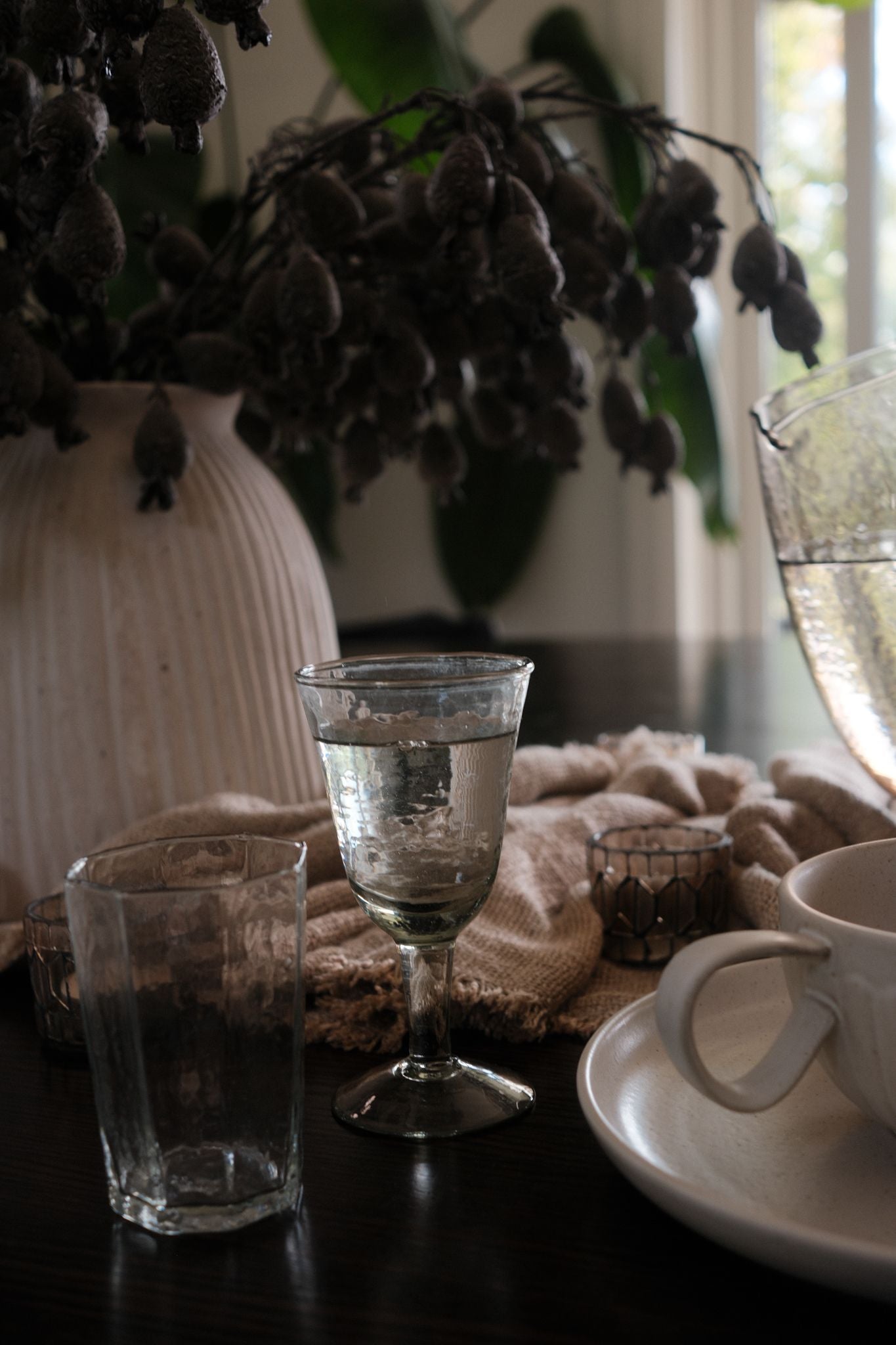This mouth blown Indian glassware exudes character - rippled texture, organic shapes, and natural variations from the artisan’s touch bring life to these wine glasses. Each piece is unique and brings rich style to the table.