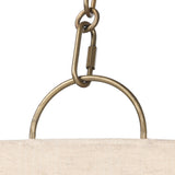 Set the mood with a Baroque-inspired pendant of oval-linked chaining and a flax-linen dome. Metal boning supports the airy spherical shade, while a brass frame adds to the warm glow.