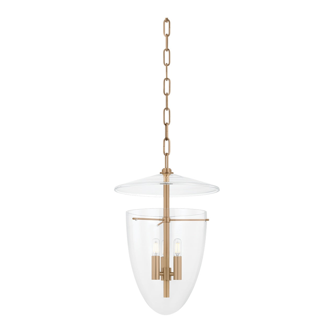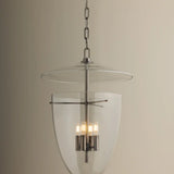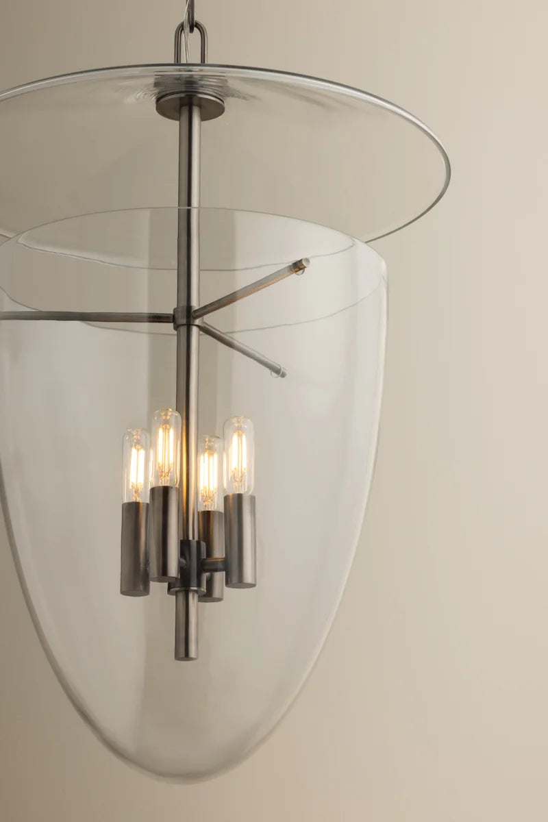 The Tully lantern presents an elegant transitional design with an inverted bell jar silhouette and a suspended glass disc at its apex. Crafted entirely from glass, it offers a fresh and surprising look that exposes the refined metalwork within. Available in 3 or 4-light configurations, Tully is offered in Patina Brass for a timeless appeal or Vintage Pewter for a more contemporary finish.