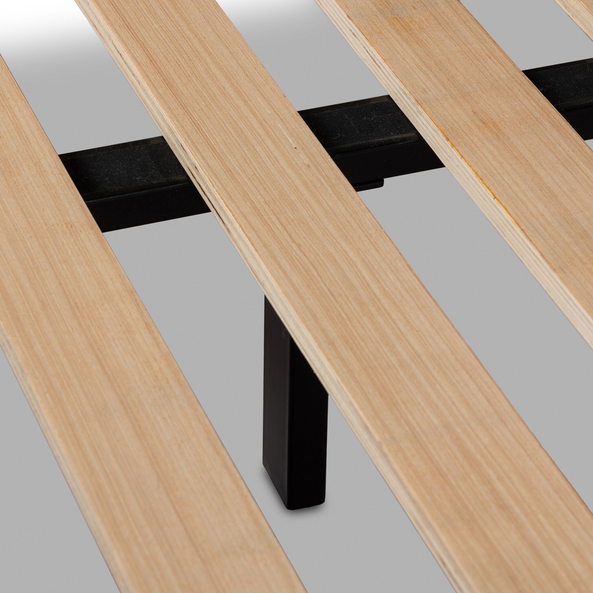 The Xander Bed combines industrial aesthetics with refined comfort. Crafted from textured black iron with streamlined tapered legs, this frame features cream upholstery that seamlessly complements contemporary and traditional interiors alike. The thoughtful design balances visual weight with functional elegance, making it an intelligent choice for those seeking both durability and sophisticated style in their bedroom sanctuary.