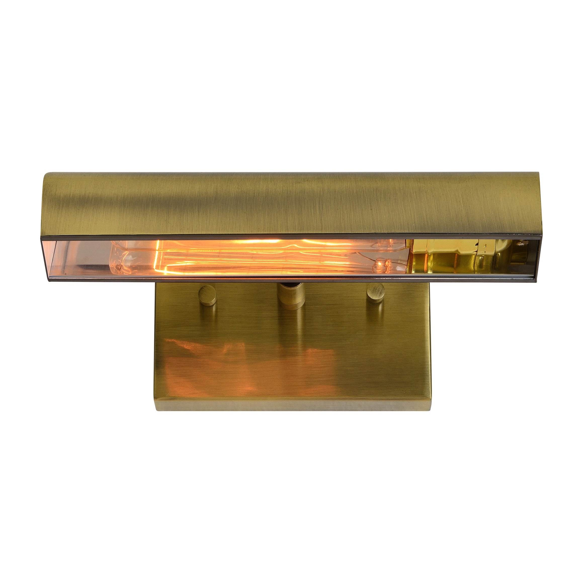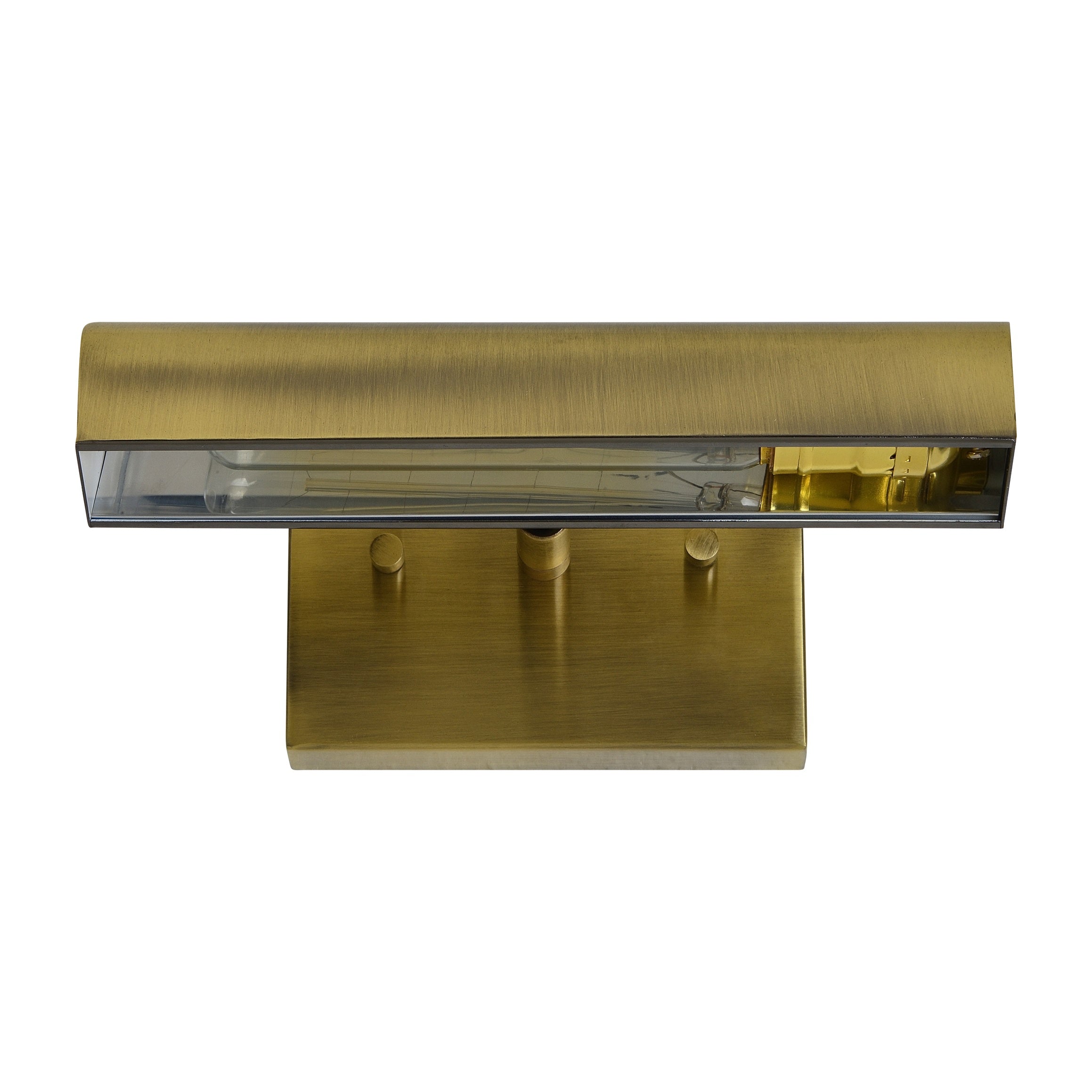 This refined wall sconce expertly illuminates your artwork, featuring antique brushed brass-plated iron that integrates effortlessly into your decor. It is designed to showcase smaller art pieces as the focal point. Bulb is included.